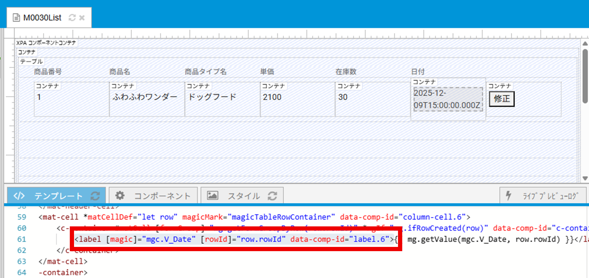 テーブルの日付がISO 8601形式で表示されることを防ぐには